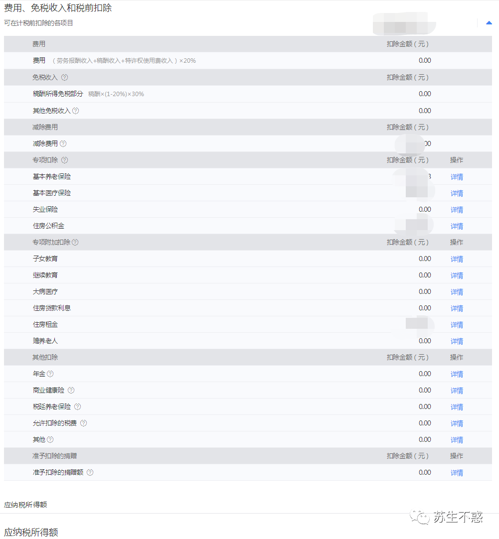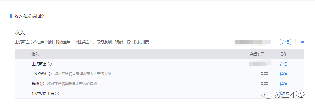 下一步进入到收入和税前扣除可以看到工资,劳务报酬什么的。