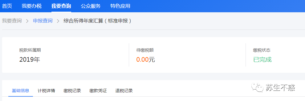 还可以查询到2019年的申报数据,去年的已经退税完成。