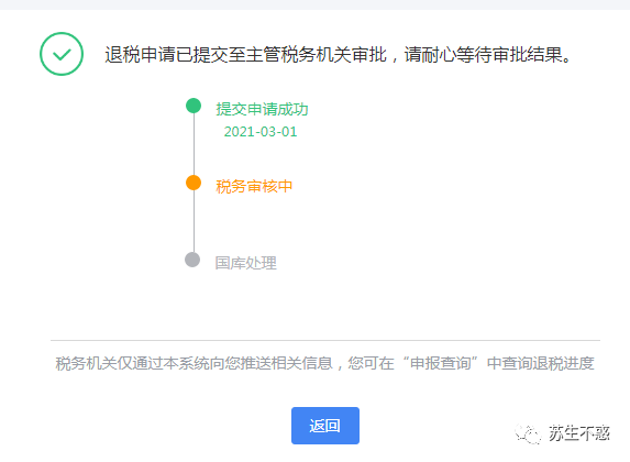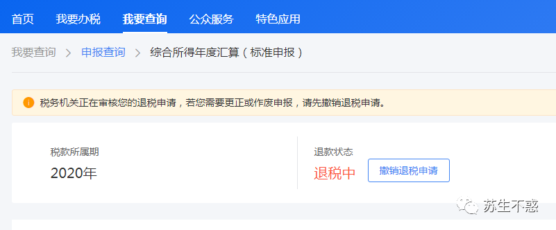 看到进度是在退税中(如果觉得有问题可以撤销申请重新申报)。
