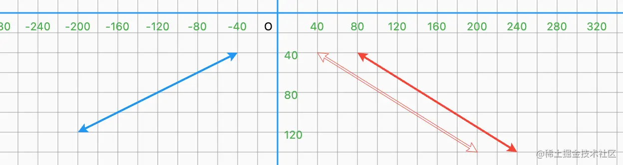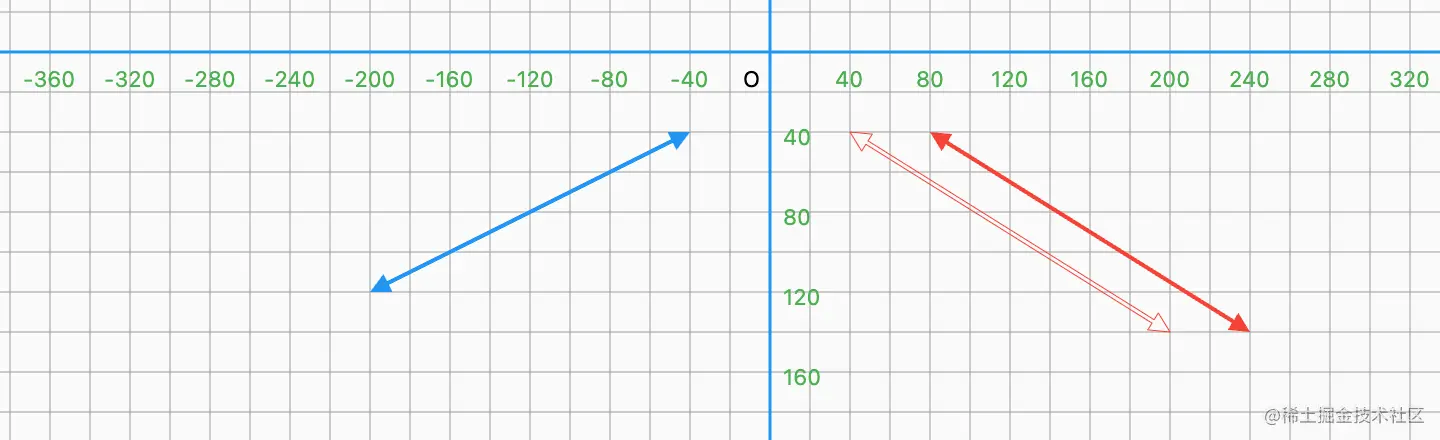 如下所示,我们在对断点进行平移时,需要根据线的角度来计算偏移量: