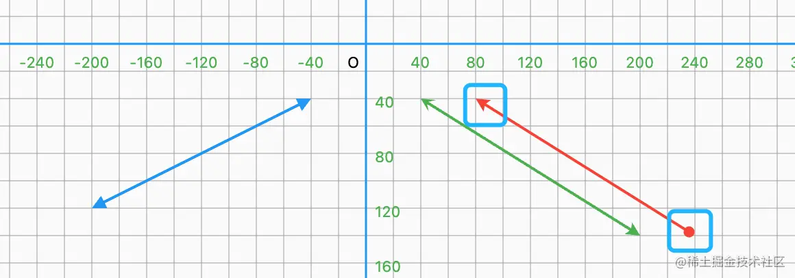 如下进行旋转,即可得到期望的箭头,tag3 处可以顺便旋转 180° 把尾点调正。这样任意指定两点的坐标,就可以得到一个箭头。