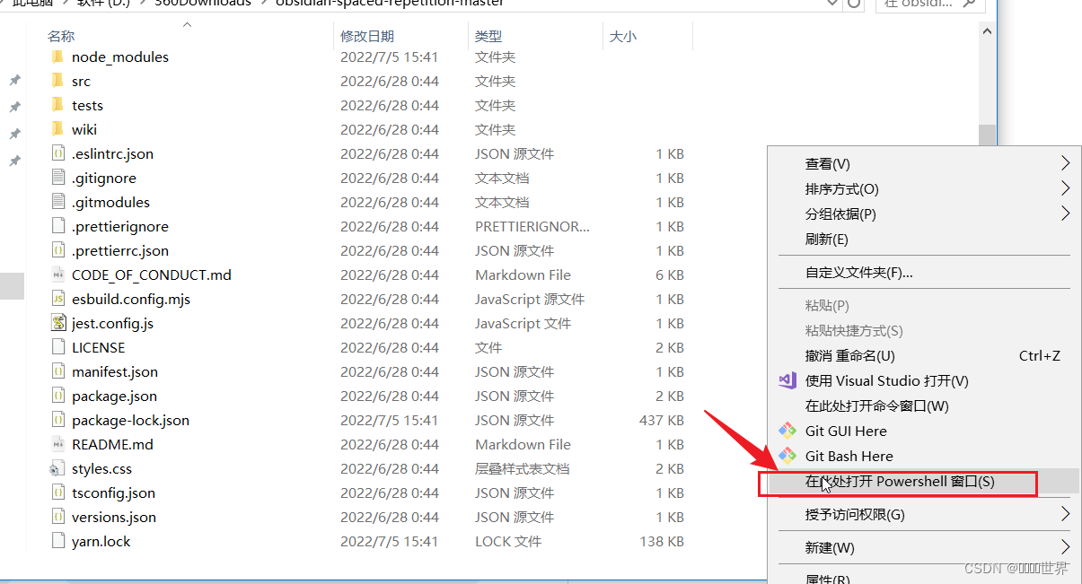 2、调出命令行,进入 obsidian-spaced-repetition-master 目录: