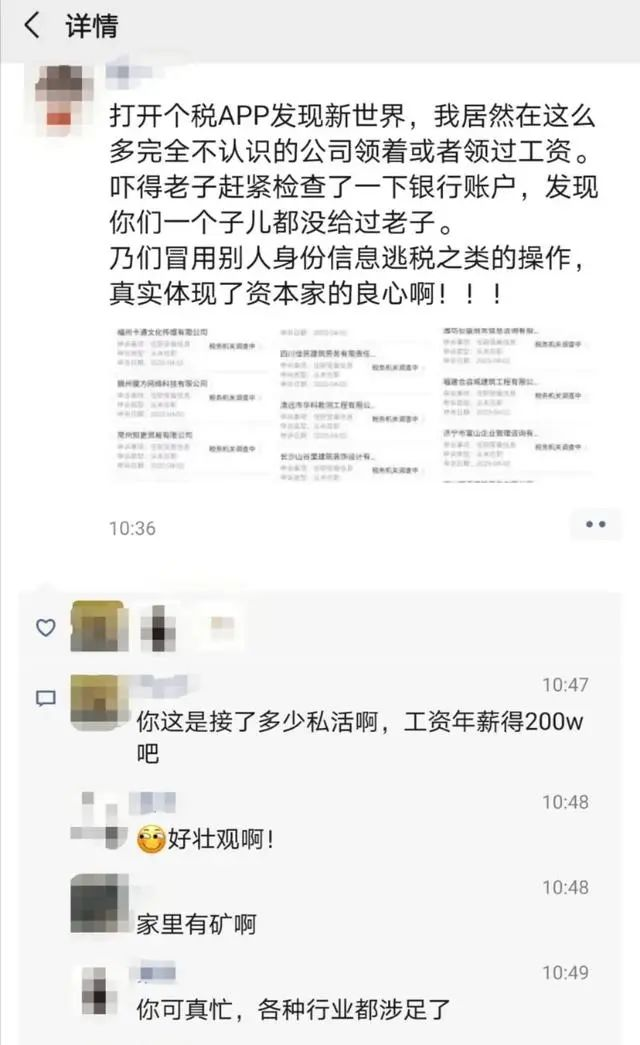 不过,最近,民工哥在社交平台发现有一个小伙的吐槽:打开个税APP发现新世界,我居然在这么多完全不认识的公司领着或领过工资……”