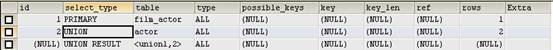 例如:EXPLAIN SELECT * FROM film_actor UNION ALL SELECT * FROM actor