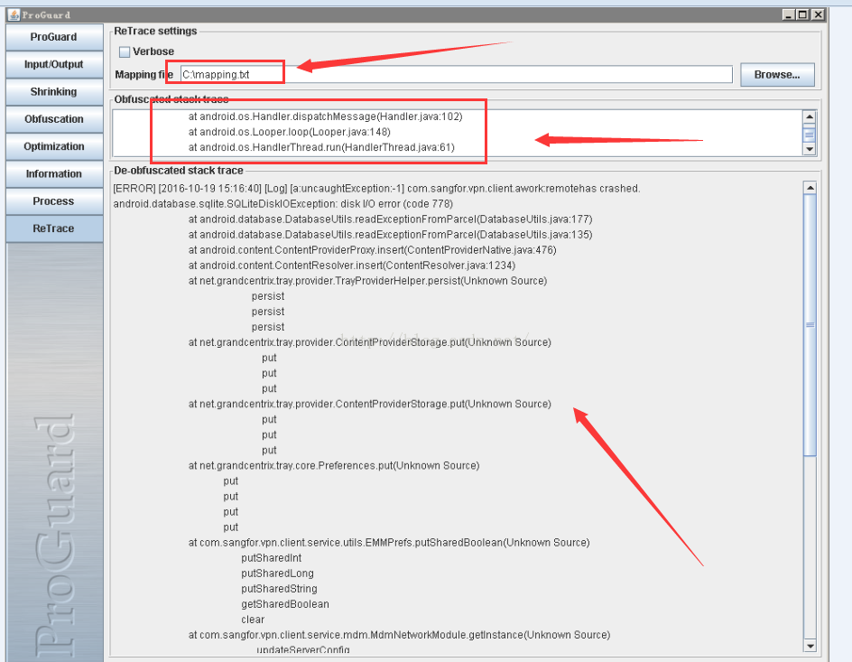 以上就是纯情书包最近收集整理的关于Android之如何看混淆后的错误日志代码的全部内容,更多相关Android之如何看混淆后内容请搜索靠谱客的其他文章。