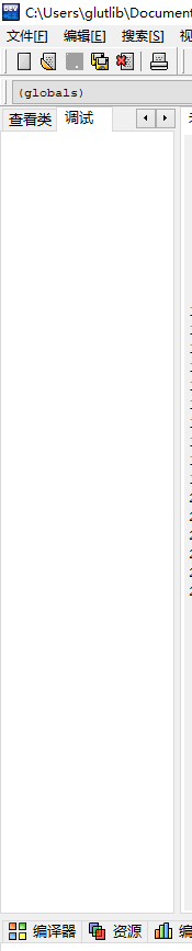 变量在这栏看,看什么变量要自己按那个查看变量,也在下面那个栏,不像VC什么变量都看得到,这个是你想看什么就输什么,左边看这个变量的动态变化。