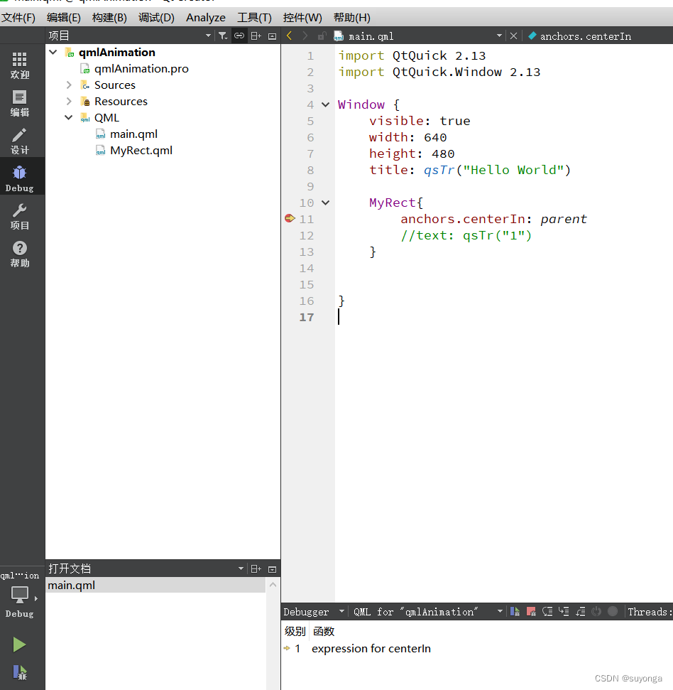 之后回到qtCreator , 选择调试(D)->开始调试->关联到QML端口...