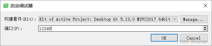 将刚才设置的端口号(例如:12345)输入到端口中,点击OK