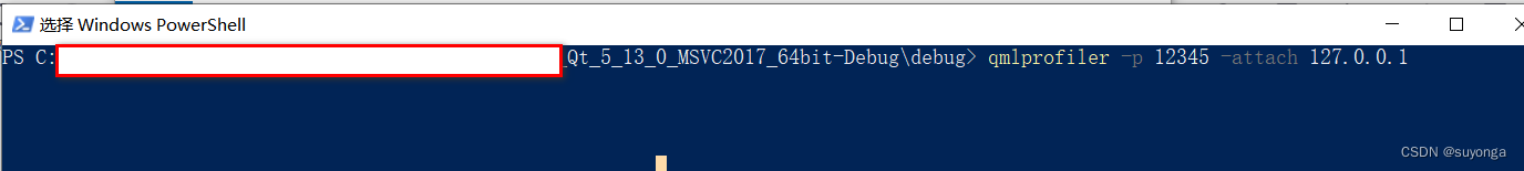 在PowerShell窗口中输入 qmlprofiler -p <port> -attach <ip address> ,回车