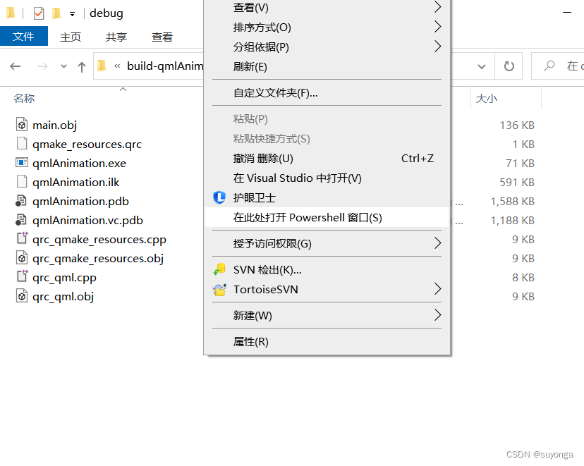 在项目生成程序文件夹下按住shift+鼠标右键,在弹出的菜单中选择 在此处打开Powershell窗口(s)