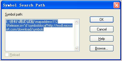3、 设置windbg A、符号表路径设置(设置_NT_SYMBOL_PATH环境变量后,可以自动加载) D:symbollocal;SRV*D:symbolcache*http://msdl.microsoft.com/download/symbols 其中;srv*d:/symbolslocal*http://msdl.microsoft.com/download/symbols设置的目的是下载该程序用到的操作系统相关的库函数的符号表到本地。 B、源代码路径设置