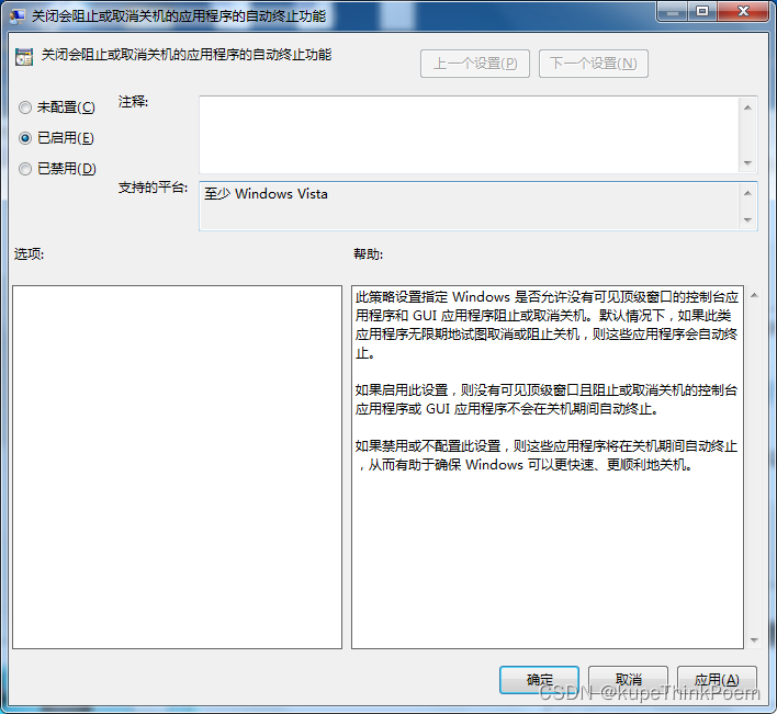 2、计算机配置-》管理模板-》系统-》关机-》关机选项-》已启用