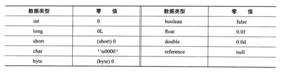 - 这里所设置的初始值"通常情况"下是数据类型默认的零值(如0、0L、null、false等),比如我们定义了