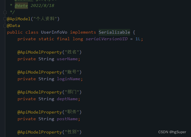 说明2:UserInfoVo也需要用@ApiModel与@ApiModelProperty