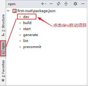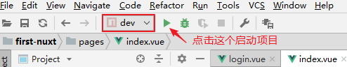 方式2: 在Edit Configurations中配置dev命令,然后点击绿色箭头执行