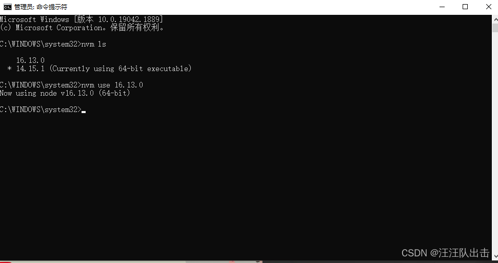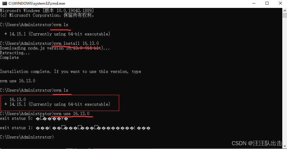 最后使用nvm use xxxx 切换到你需要的版本(切换有乱码就用管理员打开cmd再切换一次即可)