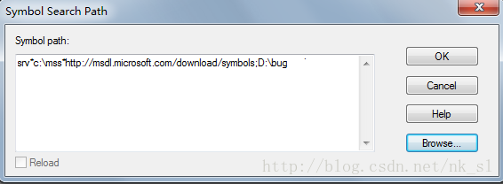在弹出的对话框中输入,截图中的内容(从连接地址下载符号集到c:mss文件夹,不知道为什么csdn审核不过,显示* 文章包含被禁用的url,无法保存和发布。)