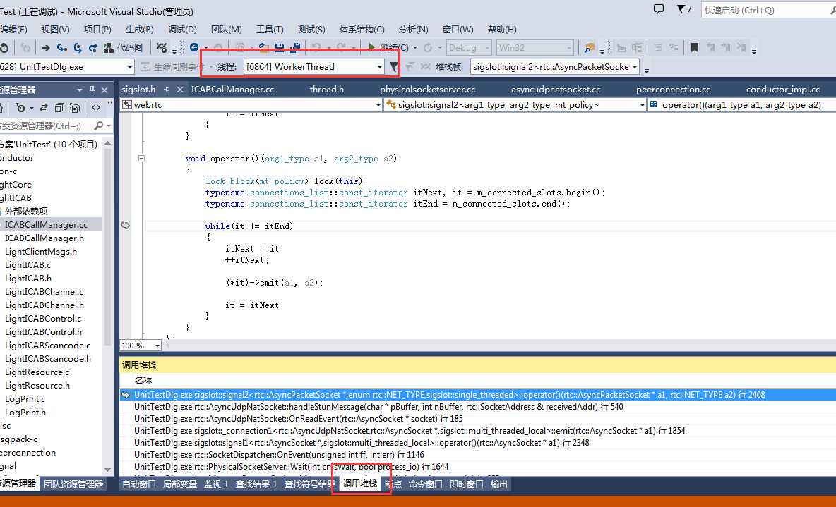 然后在“线程”窗口会显示当前运行的各个线程,以及他们的堆栈信息。