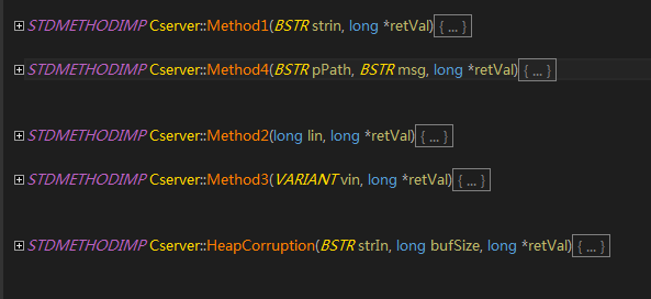 其中看到的是类里面的内容跟方法,也就是有哪些成员函数,其中的[in]跟[out]跟函数定义的时候类型一致