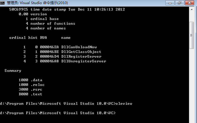 首先电脑上先安装vs2010,然后通过控制台输入以下命令行运行oleview;