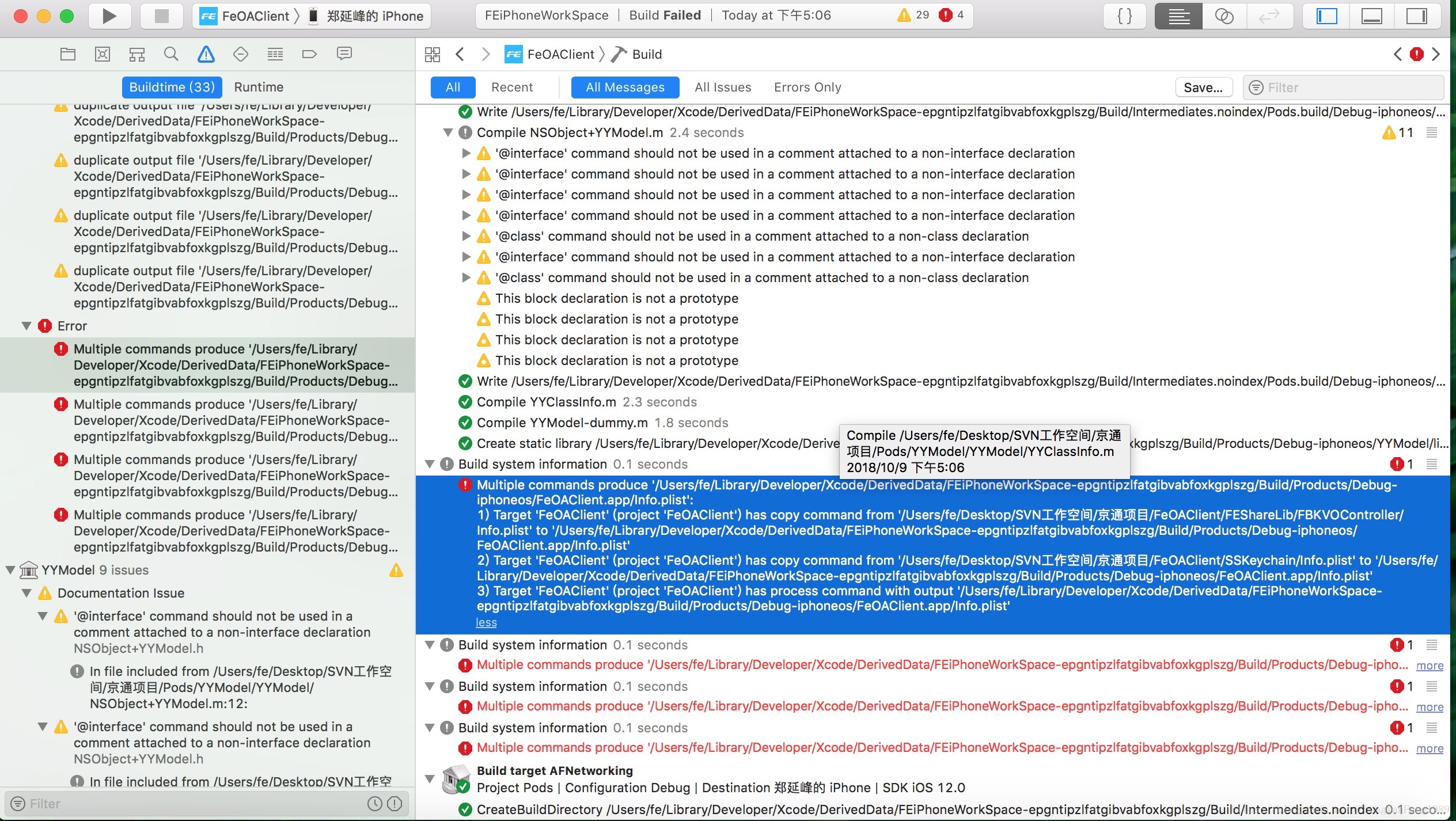 - 1) Target 'FeOAClient' (project 'FeOAClient') has copy command from '/Users/fe/Desktop/SVN工作空间/京通项目/FeOAClient/FEShareLib/FBKVOController/Info.plist' to '/Users/fe/Library/Developer/Xcode/DerivedData/FEiPhoneWorkSpace-epgntipzlfatgibvabfoxkgplszg/Build/Products/Debug-iphoneos/FeOAClient.app/Info.plist'