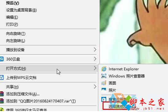 6、在图片上单击右键,选择“打开方式”—“选择其他应用”;