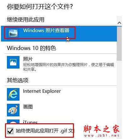 7、在窗口中选中“Windwos照片查看器”,在下面勾选“使用使用此应用打开”点击确定即可,不同格式的图片都需要按步骤6、7操作一遍,以后即可直接双击打开。