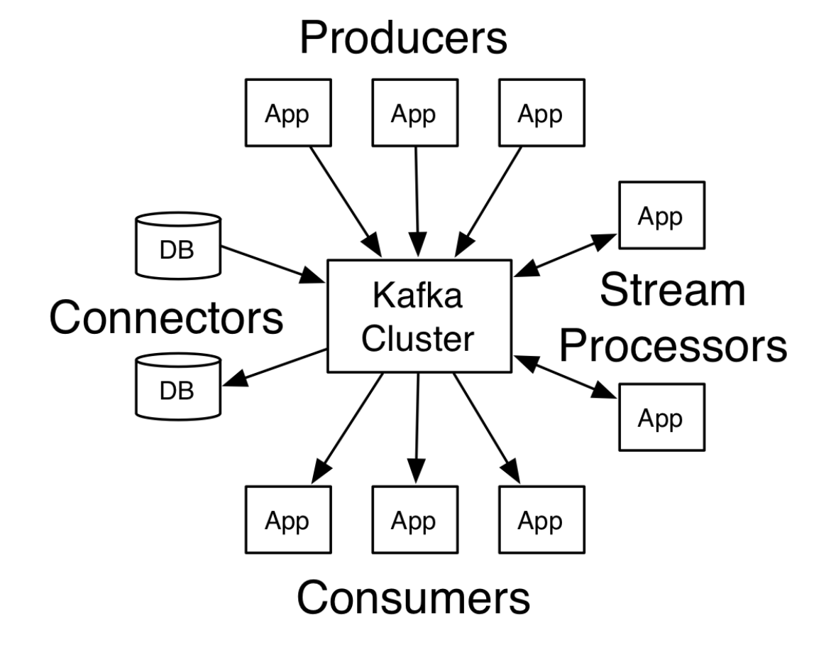 Kafka主题连接到现有的应用程序或数据系统。例如,一个连接到关系数据库的连接器(connector)可能会获取每个表的变化。