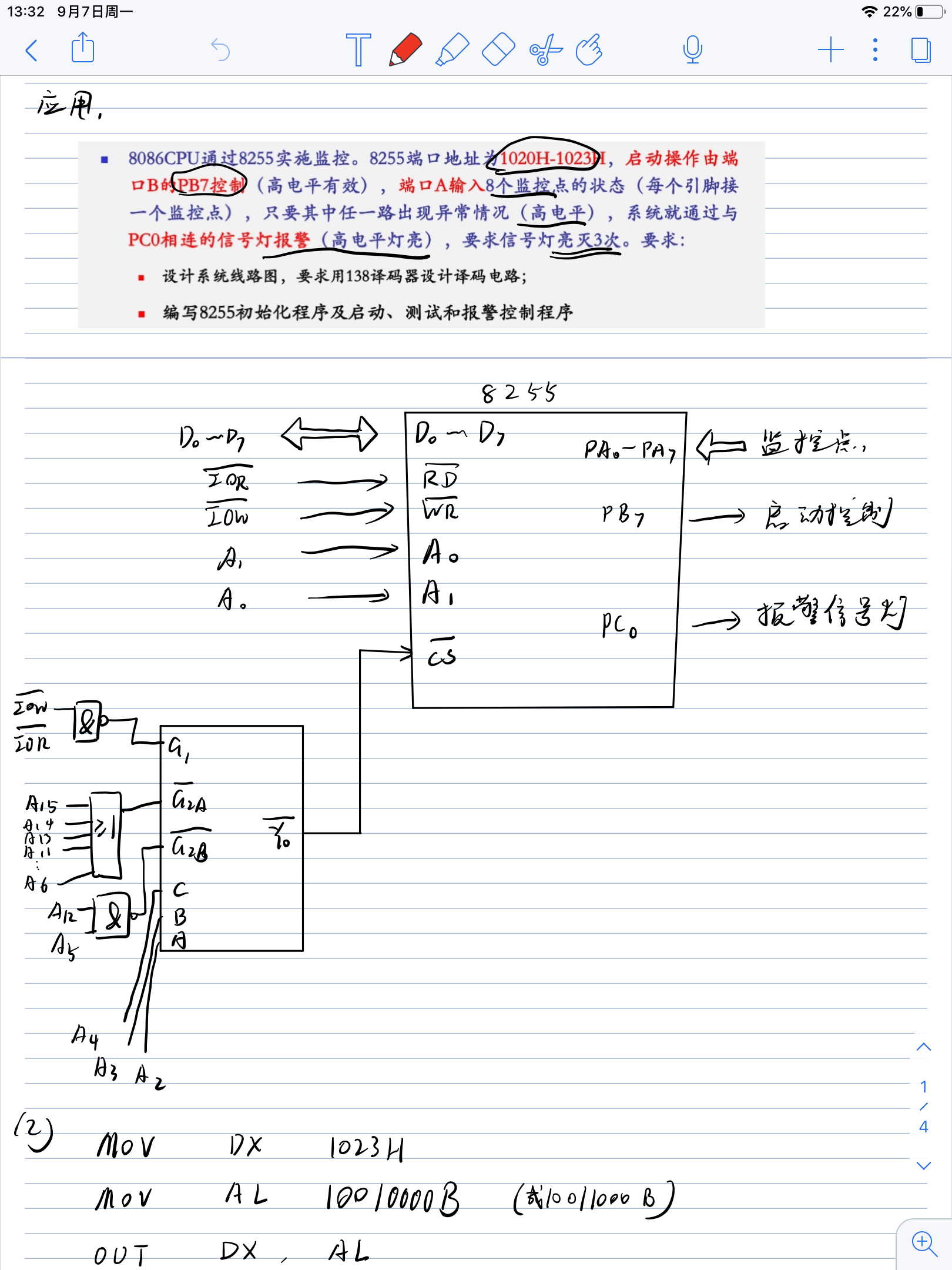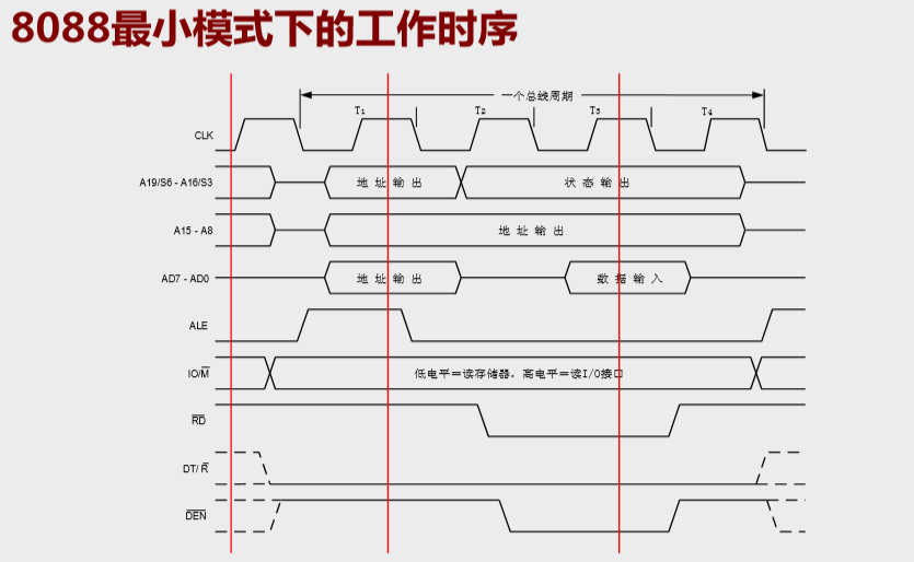 (1)M/IO=1,CPU对存储器操作,M/IO=0,CPU对I/O操作
