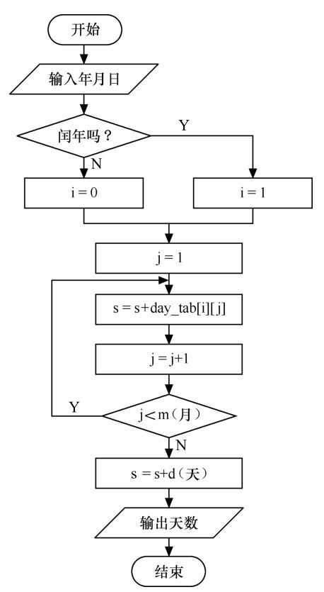 #include<stdio.h> int day_tab[2][13]={ {0,31,28,31,30,31,30,31,31,30,31,30,31}, {0,31,29,31,30,31,30,31,31,30,31,30,31}}; int day_year(int year,int month,int day) { int i,j,s=0; if(year%4==0&&year%100!=0||year%400==0) i=1; else i=0; for(j=1;j<month;j++) { s=s+day_tab[i][j]; } s=s+day; return s; } main() { int y,m,d; printf("输入年,月,日:"); scanf("%d%d%d",&y,&m,&d); printf("是这年的第%d天n",day_year(y,m,d)); }
