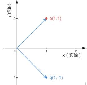复平面上有两个向量p(1, i)和q(1, -i),二者的点积是:
