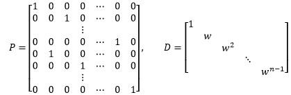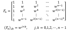 这种分解称为快速傅立叶变换。其中P是一个2n×2n的置换矩阵,D是由w的幂构成的对角矩阵: