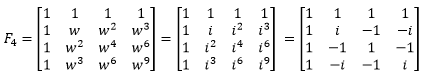 对于标准正交的实矩阵来说,矩阵的逆等于矩阵的转置,傅立叶矩阵可化简为标准正交的复矩阵,具有同样的性质,F4的逆矩阵就是它共轭的转置: