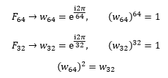以F64与F32为例,F64是一个64阶方阵,w64 = 1,w = 1;同理对于F32来说,w32 = 1,w = 1。