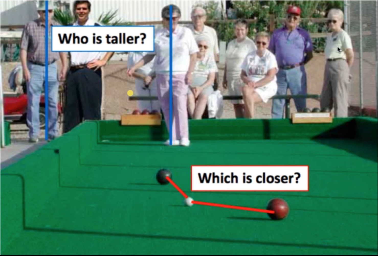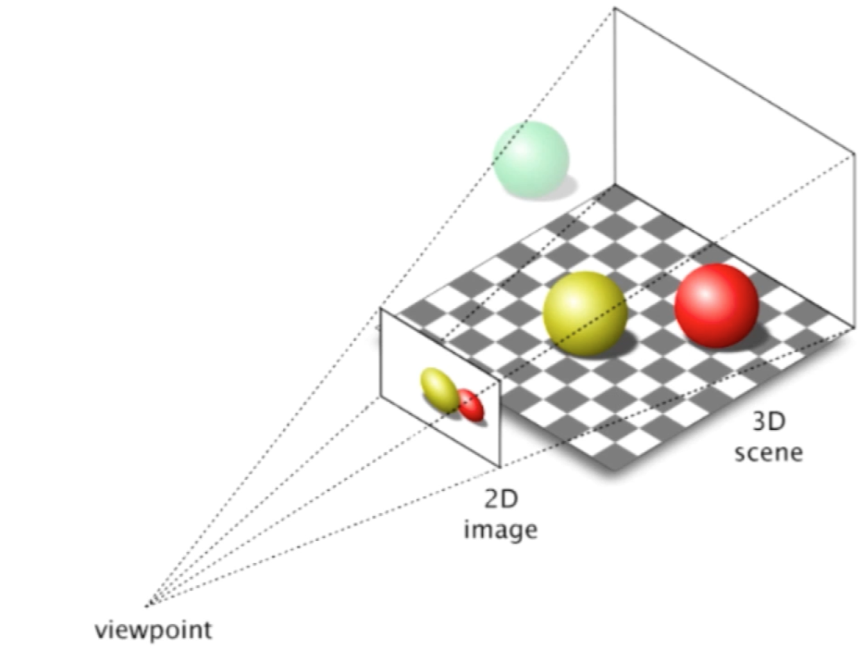 由于屏幕是一个二维空间,所以对于三维空间的物品要展现在屏幕中就需要从3维转换到2维,这是从高维空间向低维空间的转换的例子,反过来也有从低维向高维空间进行转换的应用,最典型的就是计算机视觉,其实就是通过机器可以看到我们的世界从而提取出一些信息,而机器是通过摄像头来看到的信息,而摄像头拍下来的图片是一个二维的,但是二维的照片中蕴含着三维的信息,所以计算机世界就需要通过这个二维的照片恢复在三维世界中的信息,从而理解一些问题,比如看下图: