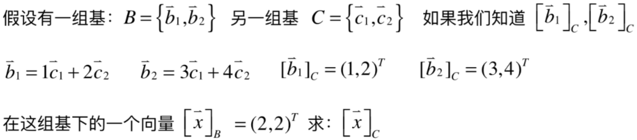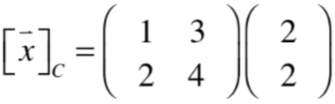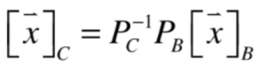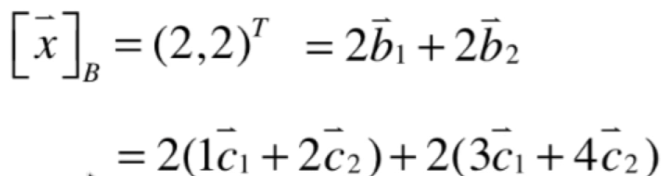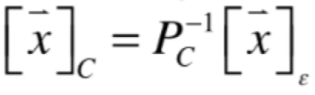 然后只要用C这组基构造成Pc矩阵,再用Pc的逆矩阵乘以在标准坐标基下所表示的坐标既为在C这组基下所表示的值,如下: