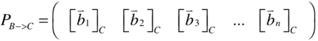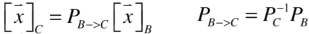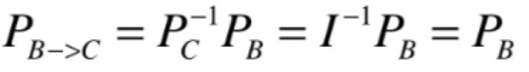 也就是如果知道了一组基到另一个坐标系下的表示的话,就可以不以单位矩阵做为桥梁来进行坐标转换的计算了,其证明为: