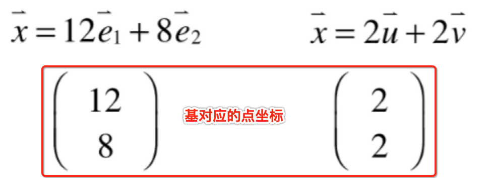那这两个坐标之间有啥联系呢?其实这个问题在之前学习看待矩阵视角时有学过,这里再来整理一下: