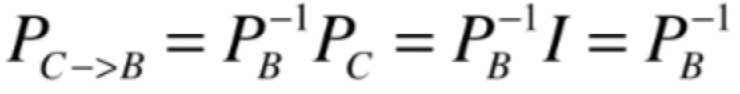 反之,如果已知C坐标系下的坐标,求B坐标系下的坐标,如下: