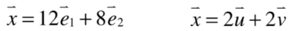 前面的式子是在e1、e2这组基下,后面的式子是在u、v的这组基下,而相应的每一组基都对应着一个坐标系,如下:
