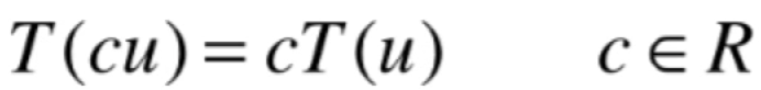 其中c属于实数集,它说明给向量u进行常数c相乘之后再做变换就等于先对向量进行一个变换然后再乘以常数c。