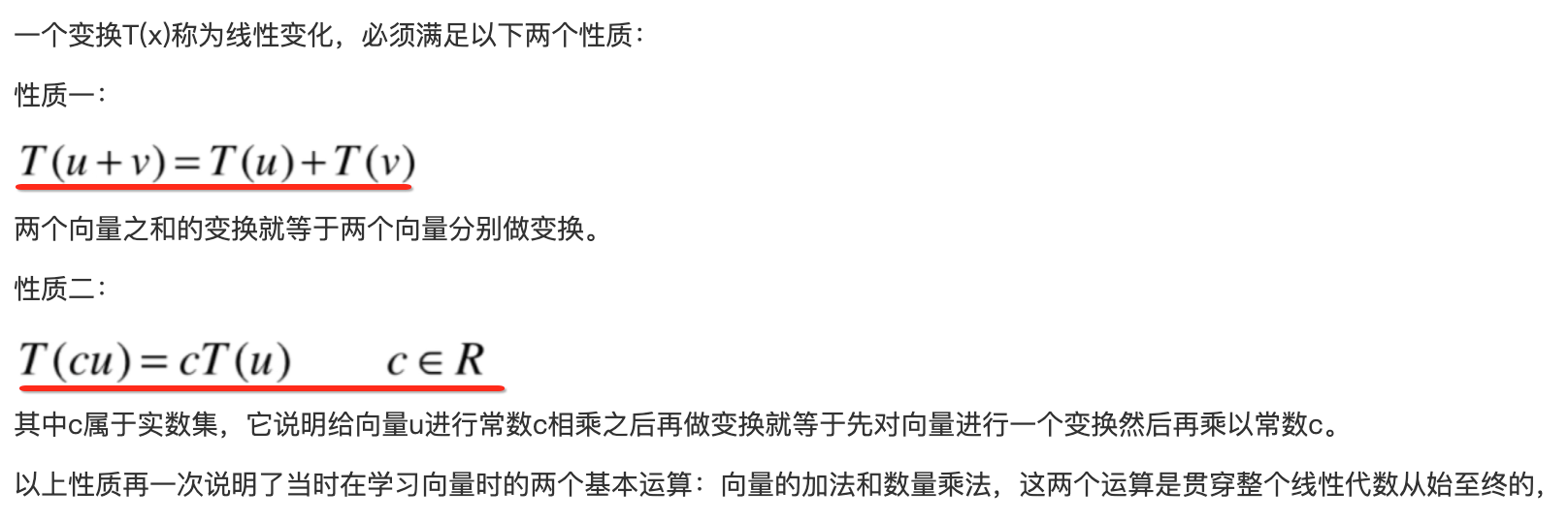 一个变换T(x)称为线性变化,必须满足以下两个性质: