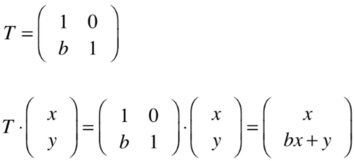 其实就是看(x,y)这个点的坐标在(1,b)、(0,1)这样的坐标系下对应在标准坐标系的位置为(x,bx + y)。