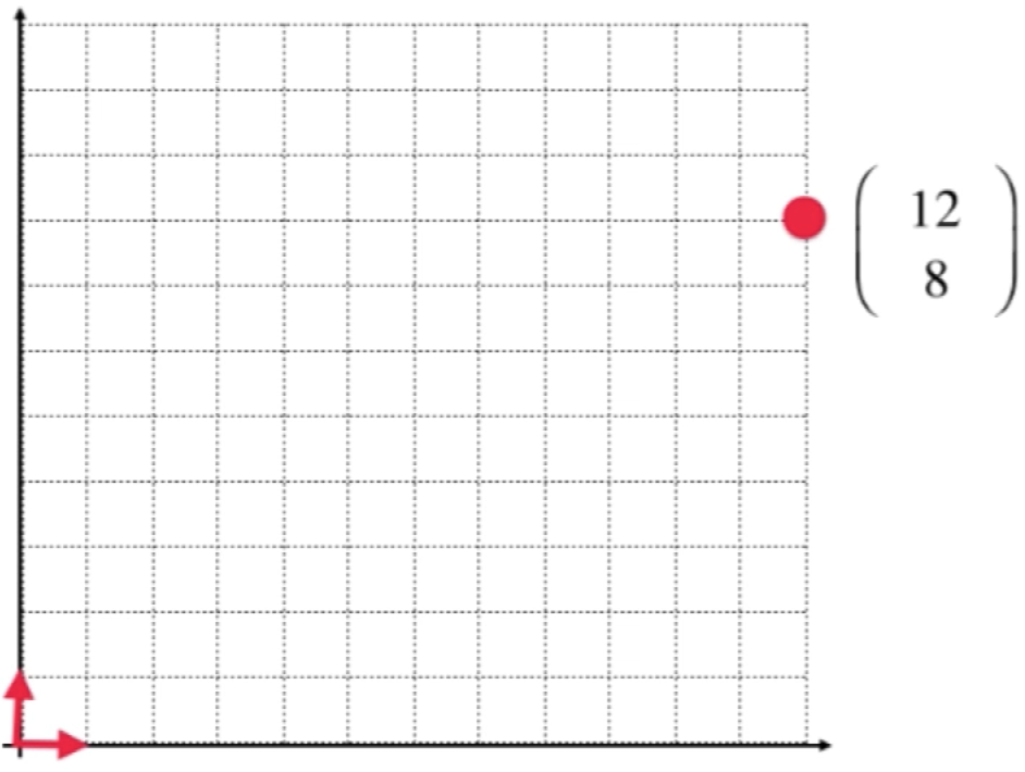 其中在这个坐标系上取一点(12,8),之所以这个点是(12,8)是建立在一个标准坐标上的,标准就包括水平向上和垂直向上的坐标轴以及定义了什么是一个单位,如下:
