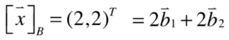 所以对于n维空间的一个点或者向量,我们定义为x,那么给定任何一组基都可以表示成这组基的线性组合,且表示方法唯一,所以: