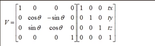 从世界空间变换到摄像机空间—>平移整个观察空间,摄像机原点和世界坐标原点重合,坐标轴重合—>摄像机是在世界空间中是先旋转,再平移—>为了让摄像机与世界坐标重合,逆变换