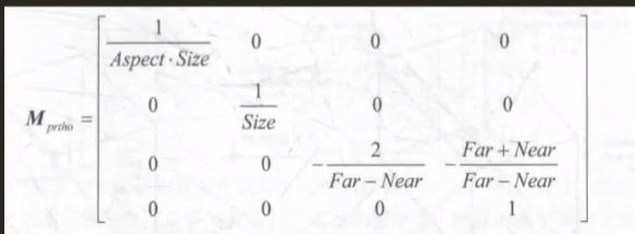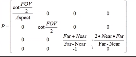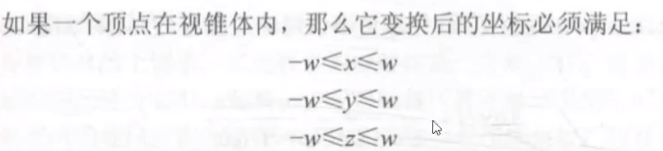3.P矩阵:对x,y,z分 量进行缩放,用w分量做范围值。如果x,y,z都在w范围内,那么该点在裁剪空间内。