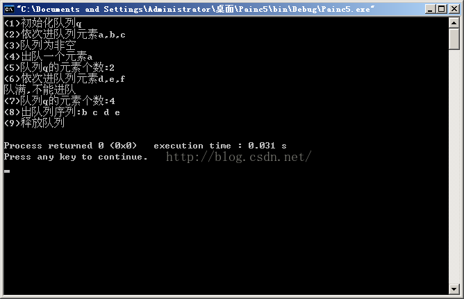 printf("(5)队列q的元素个数:%dn",QueueLength(q));