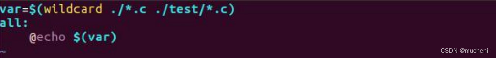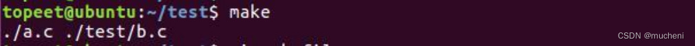 | 格式: $ (wildcard PATTENR) 功能: 展开指定的目录 举例: 在 /home/topeet/test 目录有一个“a.c” 的 c 文件和一个 test 的文件夹, 在/home/topeet/test/test 文 件夹下有一个 “b.c” 的文件。