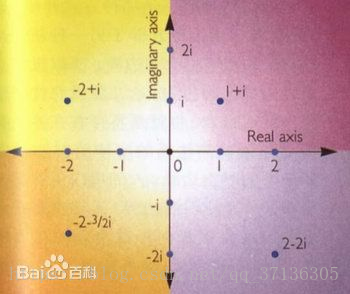 其中横坐标是实数轴,纵坐标是虚数轴,这样就可以把每个虚数看为一个向量了,对应的,虚数可以用普通坐标和极坐标(其中r为虚数长度,theta为虚数和实数轴正半轴夹角)来表示。